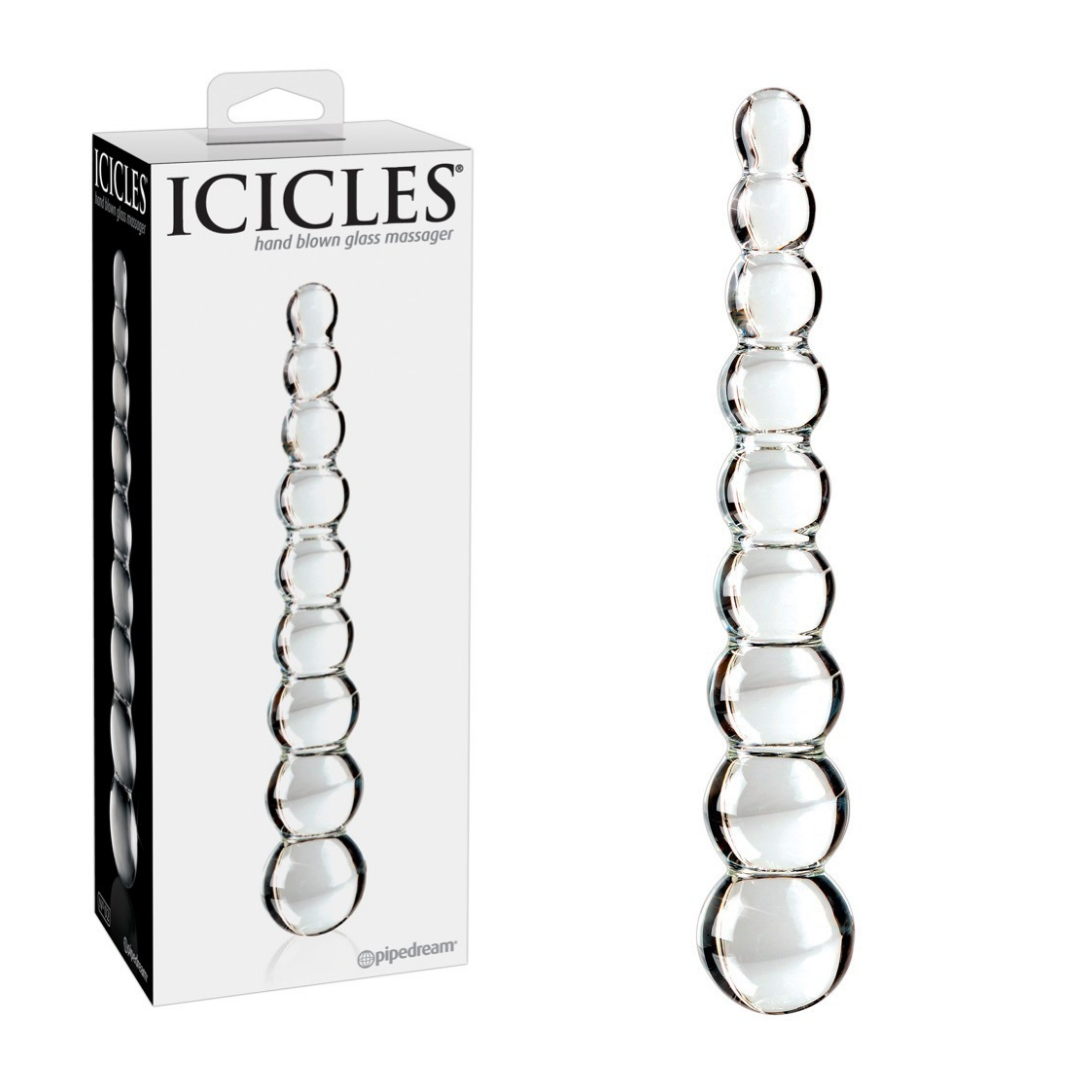 Dildo drept din sticla, cu 9 margele stimulative de dimensiuni diferite. Dildo-ul poate fi incalzit sau racit in apa pentru a oferi momente de placere deosebit de incitante. Sticla de calitate suflata manual.